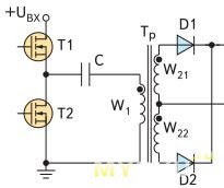 ногахмыслях, то ли не понимаете, о чём говорите.Несимметричный полумостовой преобразователь напряжения — однотактная схема с разделительным конденсатором, ключи работают аналогичносинхроному выпрямителю или понижающему DC-DC. Причём авторы это расрывают только намёками, вызывая когнитивный диссонанс и батхёрт у читателя — всё по советским традициям. Штопаный совок…