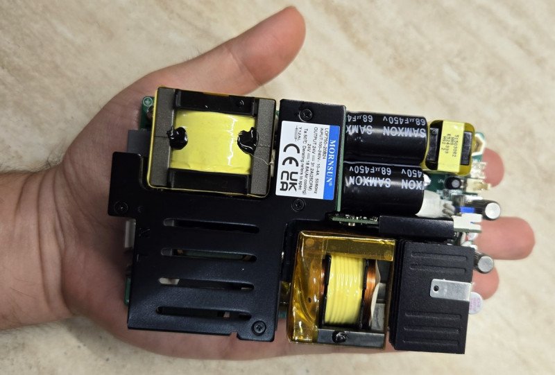 Декларируется возможность работы в широком диапазоне входных напряжений (90-264 VAC), полный набор защит — от перегрузки, КЗ, перегрева, перенапряжения по выходу, высокая эффективность до 94% и соответствие требованиям стандарта IEC62368. Выходная мощность составляет до 250 ватт при пассивном охлаждении и до 300 ватт с обдувом.