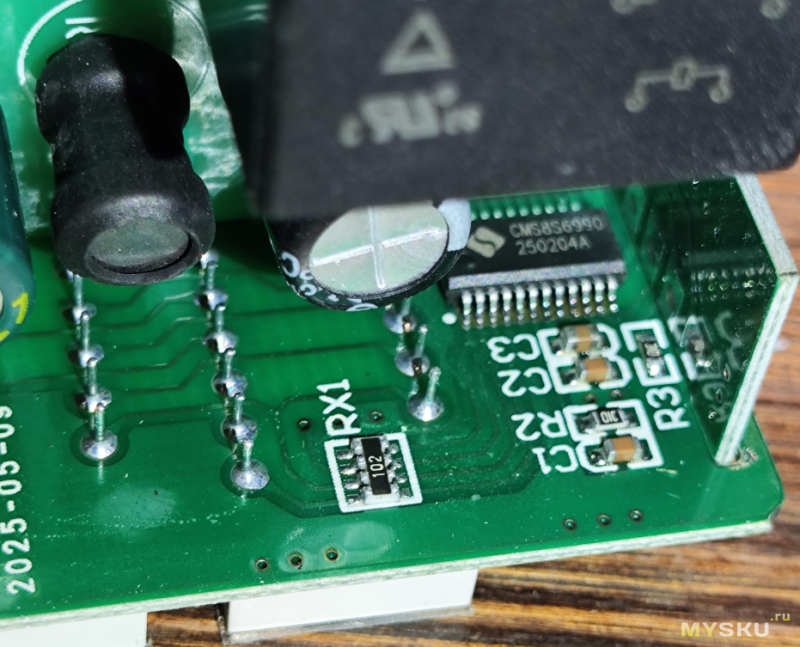 фильтрующие измеряемые ток и напряжение конденсаторы (спрятались под шлейфом):