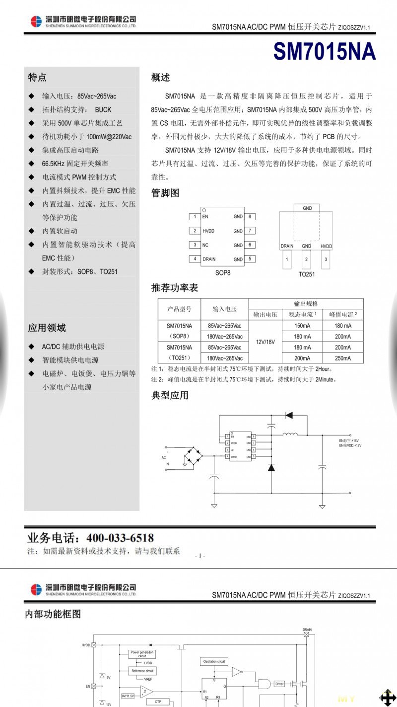 Импульсный понижающий преобразователь на основе шим контроллера SM7015NA с ключом на 650В.