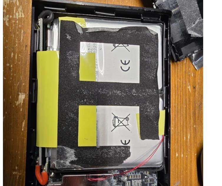 … там внутри всё довольно грамотно и аккуратно разведено — две платы с тремя DC/DC, есть алюминиевый радиатор через термопрокладку, для отвода и накопления пиковых температур, имеется температурный датчик и балансировочные контакты для сборки, которые надёжно изолированы картоном и зафиксированы каптоновой лентой, ячейки соответствуют заявленным 5000мА/чДополнительная разборка