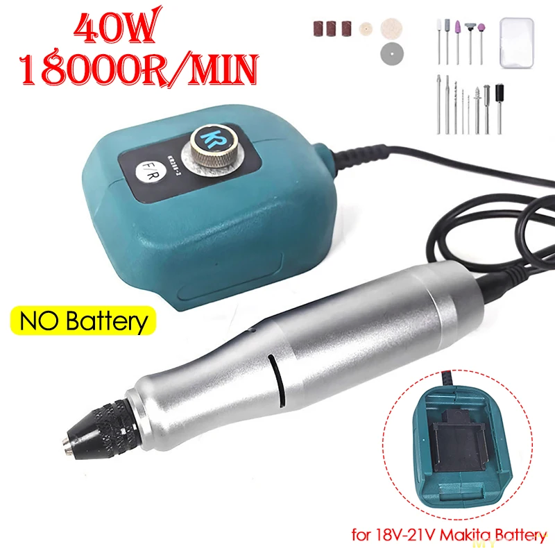 Гравер НЕ может работать во время зарядки — с разряженным аккумулятором мотор снижает обороты до нуля и отключается.