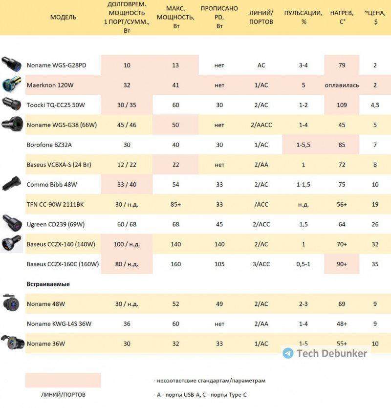 Если вам интересно, что показывают в тестах другие зарядки, у меня собрана табличка, которую я периодически обновляю. Там же есть всякие рекомендации, поскольку идеальной зарядки еще не нашлось. Общее правило такое – если нужна зарядка в прикуриватель с отдачей 20 Вт на порт, то присматриваться надо к брендовым моделям, которые по заявлениям выдают на одном порту ~30-40 Вт. Тогда есть нормальный шанс на долговременную работу с требуемой отдачей.