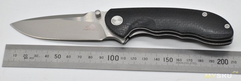 Развесовка сбалансирована по пальцевой выемке на рукоятке.Сравнение размеров с удачным флиппером FREETIGER FT71: