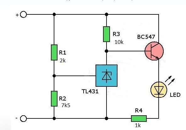 По мере разряда свет плавно перетекает с зеленого на красный. Ставил такую на все свои шурики, сверлилки, фонари. От 2,5 в до 12 в. Размер делаю 1*2 см.