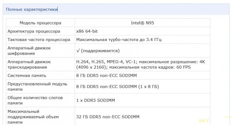 | Максимальная внутренняя емкость хранилища | 32 ТБ (до 4 дисков по 8 ТБ) |