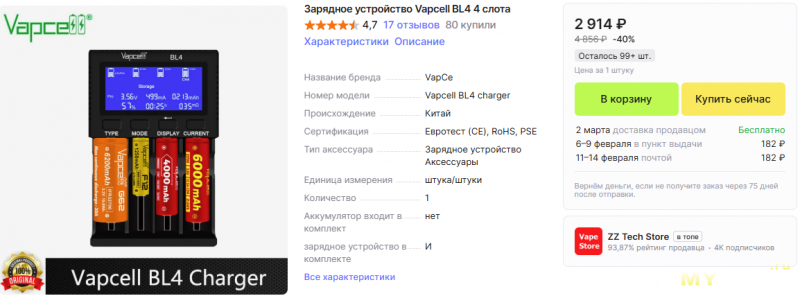 Vapcell дешевле (-700 руб. — алик, — 900 руб — OZON)