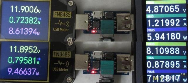 кпд здесь выше, 64-69%, кроме минимального напряжения, там все те же 58%.Максимум (ниже которого напряжение проваливается) от 3 и 12В на входе, на выходе 5В и максимальные ~8.5В, использовать в таком режиме сколь-либо продолжительное время нельзя ввиду перегрева: