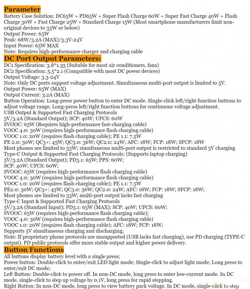 UFCS, VOOC, WARP, APPLE 2.4, AFC 9V/12V, PD2.0/3.0/3.1