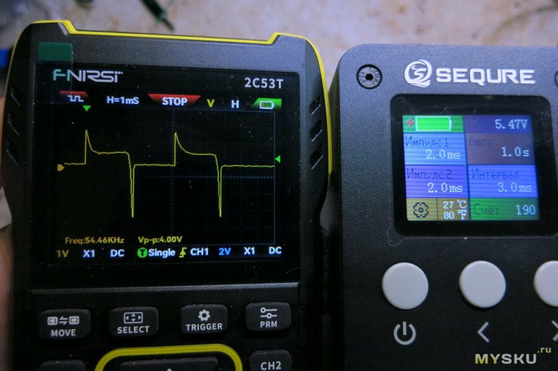 Осциллограф показал длительность импульса 5,6мс, шунт примерно 5,7мс.