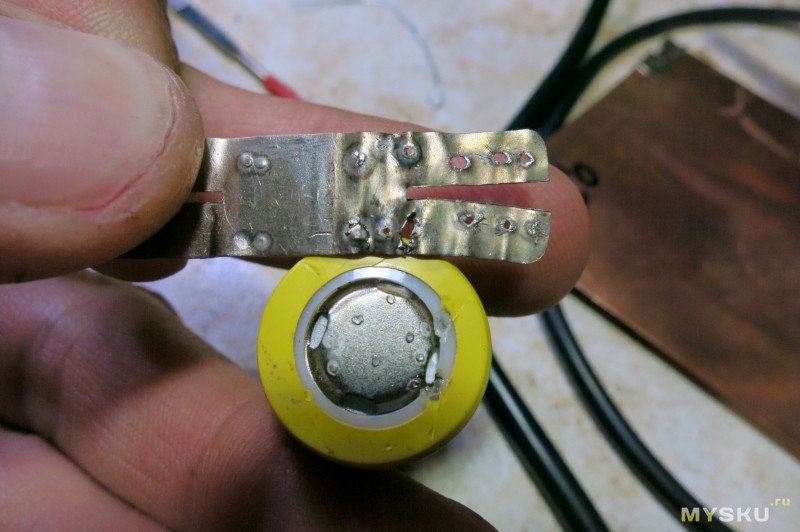 Добавил в обзор приваривание меди к ленте 0,2мм, которая иммитирует минус аккумулятора. Перед разделом «разборка». Там видно что происходит внутри