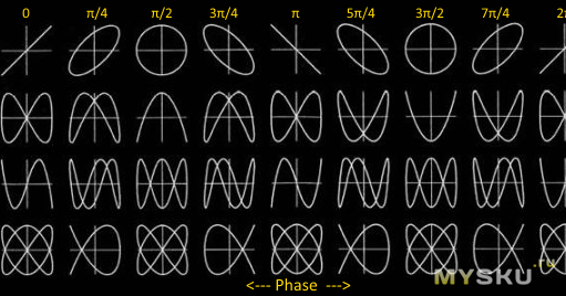 детстве июности ни лазерных указок, ни игрушек-Спирографов и в помине не было, так же, как и частотомеров, хотя с генераторами и осциллографами было попроще и посвободней.Поэтому при необходимости можно было сваять кварцевый генератор с известной частотой, подать с него сигнал на развертку, а измеряемый согнал на вход и получить короноподобную картинку, количество пиков в которой равнялось соотношению частот. Само-собой и сдвиг фаз сигналов так же визуализировался.
