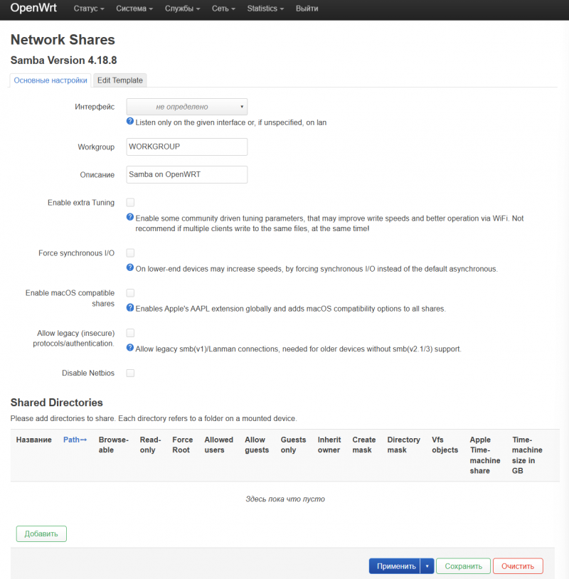 Поднял SMB через терминал — производительность такая же, как на OpenWrt.