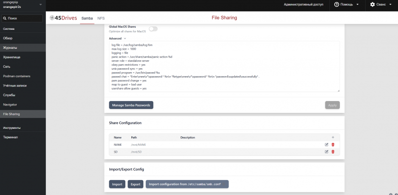 Панель управления реализовал на Cockpit. SMB тоже можно было сделать через интерфейс с помощью аддона.