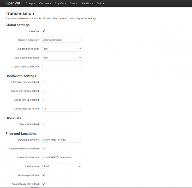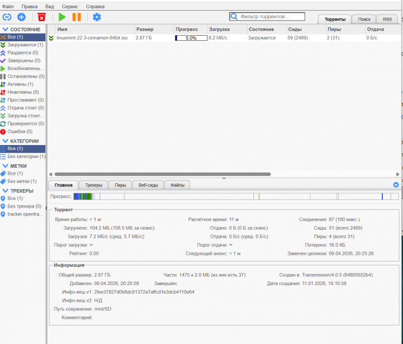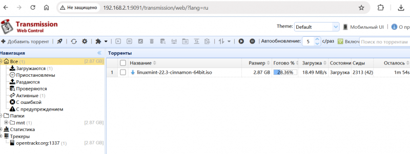 В системе предустановлен торрент-клиент Transmission.