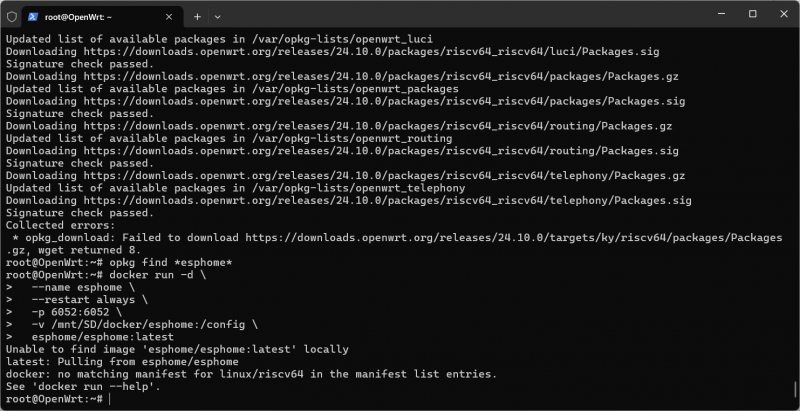 Пробовал запускать контейнеры от ARM64 через QEMU — неработоспособно. Собрать Home Assistant из исходников со всеми зависимостями тоже не удалось.