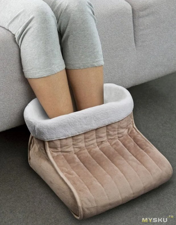 Снаружи светло-серый плюш, внутри белая «овечка». За нагрев отвечают двойные нагревательные жилы, 6 уровней температуры, таймер до 10 часов, защита от перегрева и съёмный коннектор под стирку. Управление простое: кнопка включения и две пары «плюс-минус» для нагрева и таймера.