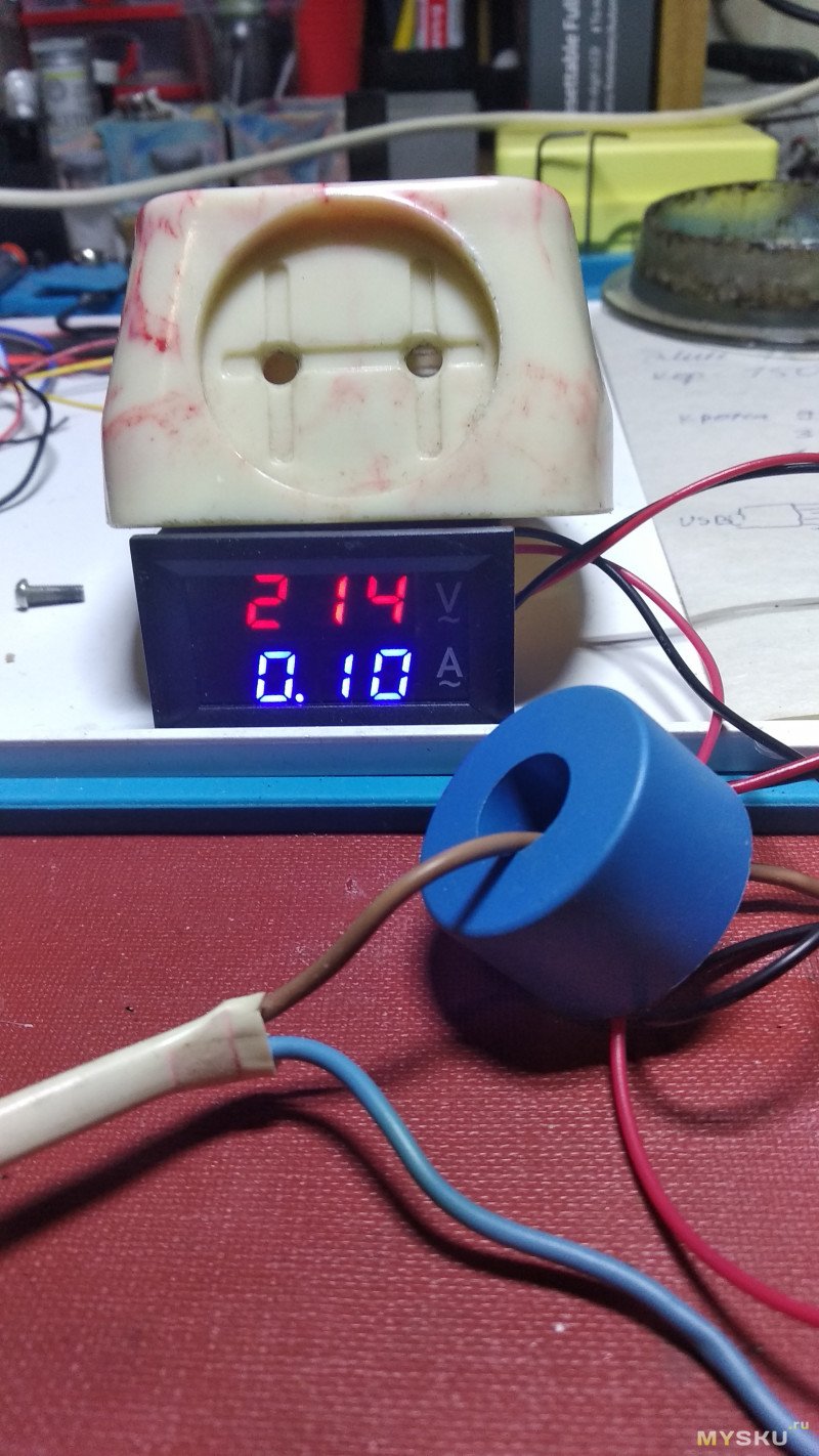 Для сравнения замеров силы тока возьмём умную розетку с функцией контроля параметров электричества. Замеряем фазный провод.