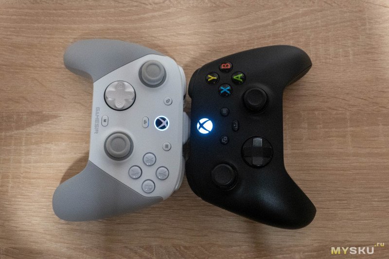 Я разницы между 2мс и 8мс не чувствую, поэтому в играх особых изменений не заметил. С привычной крестовиной GameSir G7 Pro по размеру и форме корпуса полностью повторяет оригинальный геймпад Xbox, поэтому дискомфорта после перехода на новую модель не было абсолютно. Наоборот, за счет прорезиненных ручек, кучи дополнительных кнопок и переключателей для настройки под себя.