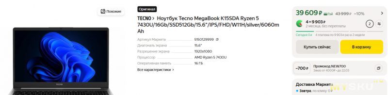 Ноутбук Ninkear N16 Pro на ЦП i7-12700H (Из РФ 60 281 ₽)