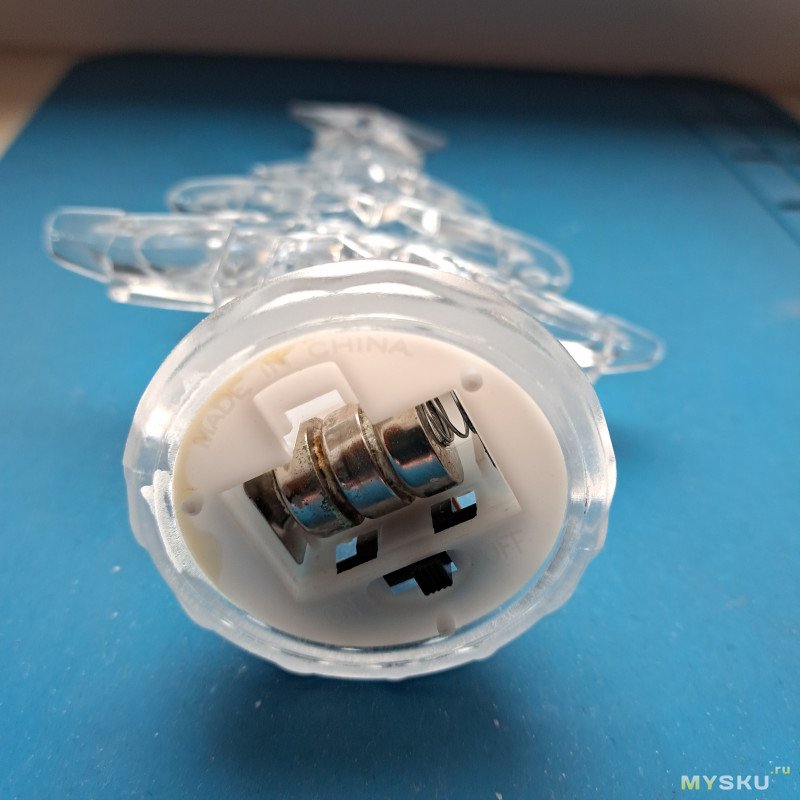 Вывод: может послужить донором для самоделок аж трех батареек LR41, переключателя на 3 положения, светодиода и пружинки для самоделок. Даже ничего не нужно отпаивать, просто нужно отогнуть.