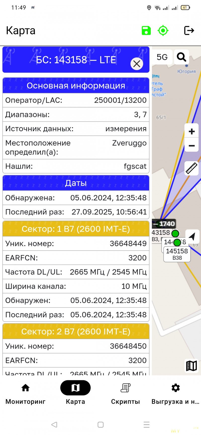 Для определения расположения на карте базовых станций, частот на которых они работают и уникального номера станции я использовал бесплатную программу 4Cells. Можно скачать ее на смартфон или использовать веб-версию. Я объехал на машине всю округу и фиксировал в смартфоне наличие интернета. Возле каждой такой вышки в программе 4Cells смотрел и записывал уникальный номер станции и на каких частотных диапазонах она работает (например, В1, В3, В7 или В28).