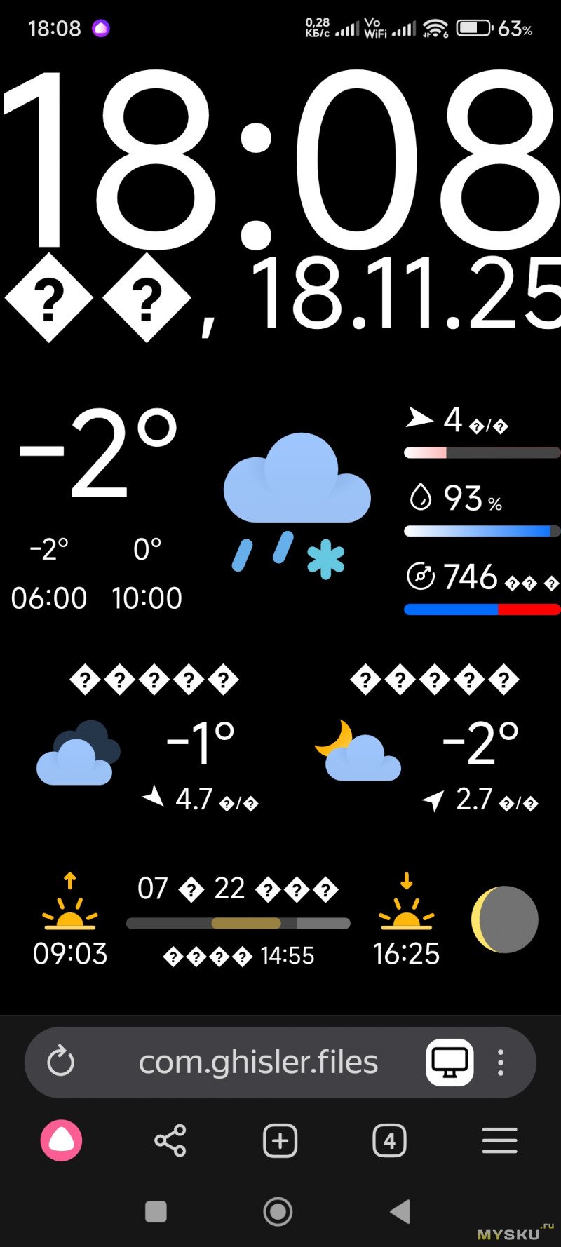Переводим в полноэкранный режим тапом, чтобы скрыть интерфейс браузера. Информер готов.