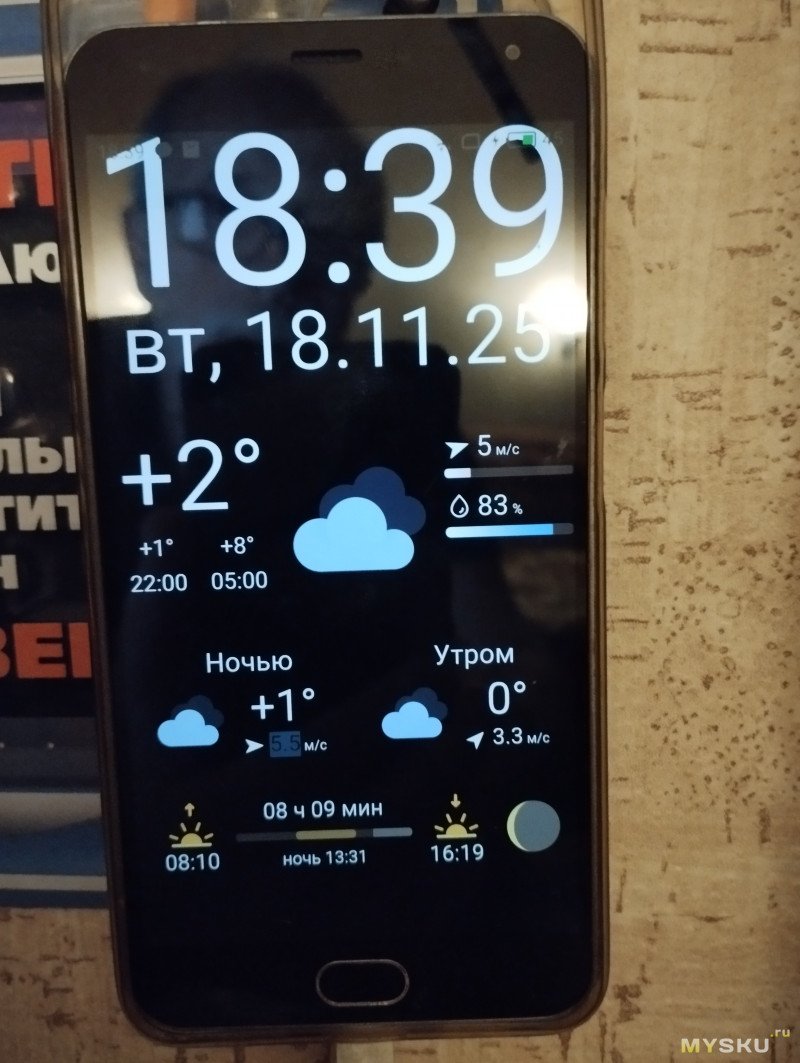 Так как подразумевается стационарное использование, то необходимо выбрать удобное место с доступом к питанию. Для меня идеальным по всем параметрам оказалось размещение около входной двери. Во-первых, удобно знать прогноз непосредственно перед выходом на улицу. Во-вторых, это является центром квартиры и информер виден из многих мест и при переходах между комнатами. А так же, у меня реализована еще одна функция, которая в принципе заставила заняться проектом (об этом ниже). Для начала лучше устанавливать временно, чтобы определиться с местом. Я использовался двусторонний скотч, как ни странно, телефон висел так продолжительное время, но потом все-таки отклеился и повис на шнурке, хорошо подстраховался.Дополнительная информация