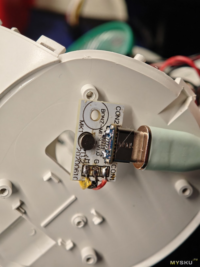 Запаиваю разъем на место. Если контаткты данных припаял родные, то контакты плюс и минус разъема были отломаны, по колхозному удлинил их проводами.
