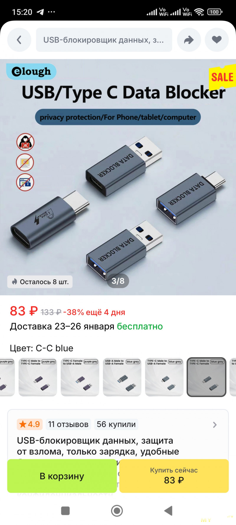И сразу появились в продаже девайсы под названием USB Data Blocker. Что он из себя представляет — обычный переходник мама-папа (например USB-A/USB-A, USB-A/USB-C и так далее). Вы втыкаете кабель зарядки не в порт общественной зарядки, а в переходник. А уже сам переходник в порт зарядки. Сам же переходник мелкий и занимает минимум места. Можно кинуть в сумку и использовать когда надо. Все просто и удобно. Физически там все элементарно — просто оторваны дорожки D+ и D-. Соответственно, никакой передачи данных нет. Подумал, что надо купить. Мало ли что. И вот тут самое интересное. На мас-маркетах их нет (я нашел только один какой-то древний лот, которого нет давно в продаже). Такие девайсы есть в разных security магазинах. Но совершенно по конской цене. И это меня возмутило. По сути копеечный переходник и у нас берут деньги только за 'секьюрность' устройства. Естественно, не остались в стороне и китайцы. На Али они тоже есть. Само собой, дешевле. Но тоже дороже копеечных переходников. Пример: