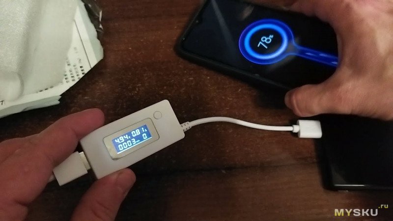 Проверяем — беру телефон с быстрой зарядкой и подключаю через переходник к родной зарядке. Быстрой зарядки нет, т.к. нет обмена данными. Телефон берет 5в 1.7А.