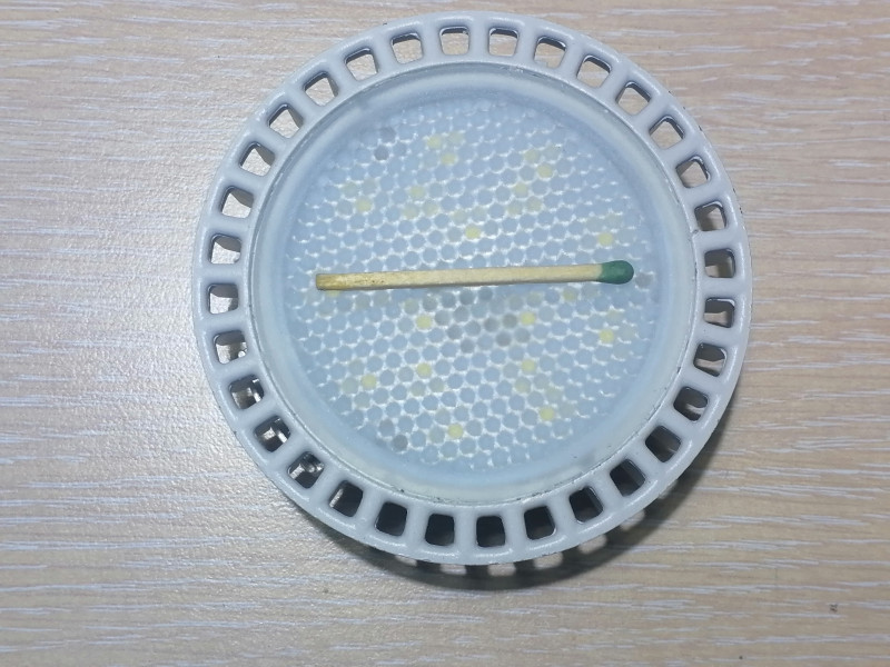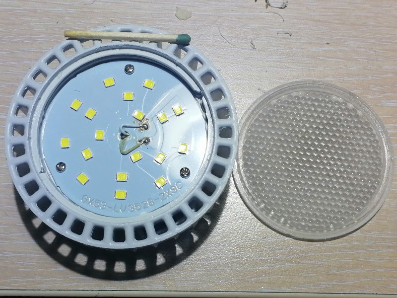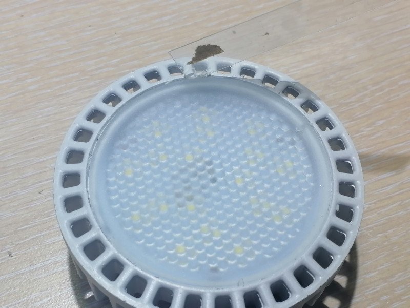 Первое, что бросилось в глаза в магазине — необычно малое для ламп в корпусе GX53 стекло и перфорация вокруг него.