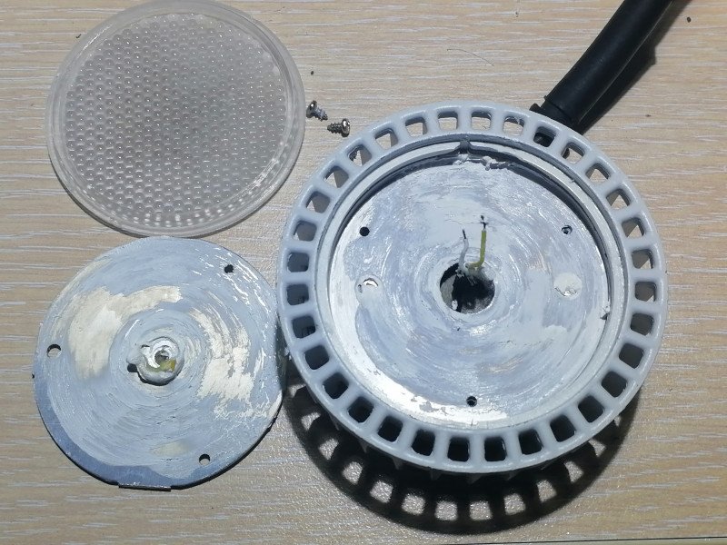 После этого лампу можно собрать обратно, не забывая нанести под пластину со светодиодами термопасту как положено.