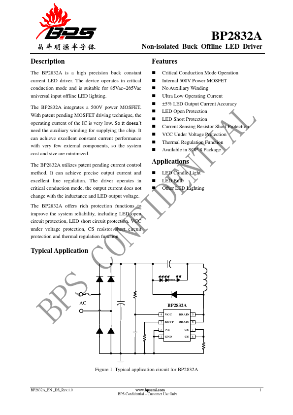 Драйвер реализован на основе микросхемы BP2832A: