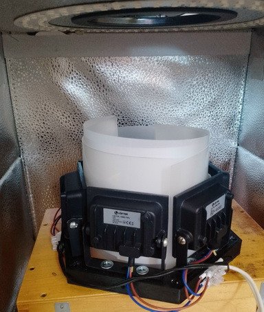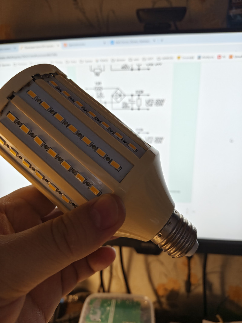 Колхозил также внутри корпуса прожектора 3 светодиодных модуля из… 3 светодиодных лампочек с 3 драйверами. включенных паралельно. Один лампочка сгорела, 2 светят, нужно снять и выбросить. Делал из старой толстостенной большой сковородки сборку из 7 модулей, куска оконного стекла прикрепленного на герметик спереди — грелся адски, поставил сзади 120 вентилятор 12в чарез маленький блок — грелся, прилепил (дурак дураком)) сзади элемент Пельтье для «охлаждения» — он перестал работать. В итоге забил на это)