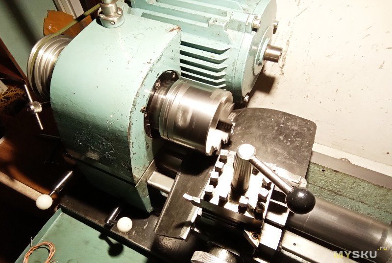 Вот патрон станка вращается, а кулачки кажутся неподвижными. В качестве осветителя на станке маленький LED прожектор.