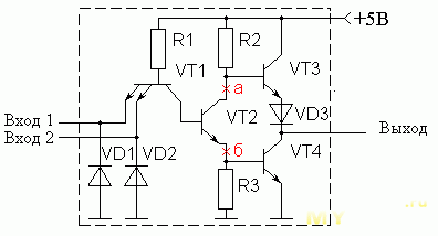 И с тех пор все цифровые ЭВМ строятся по данному фундаментальному принципу, например TTL элемент 2И-НЕ: