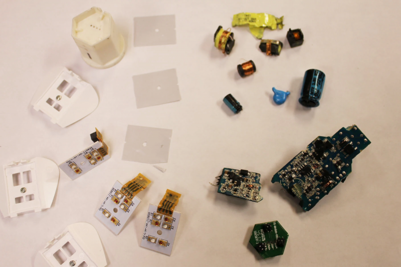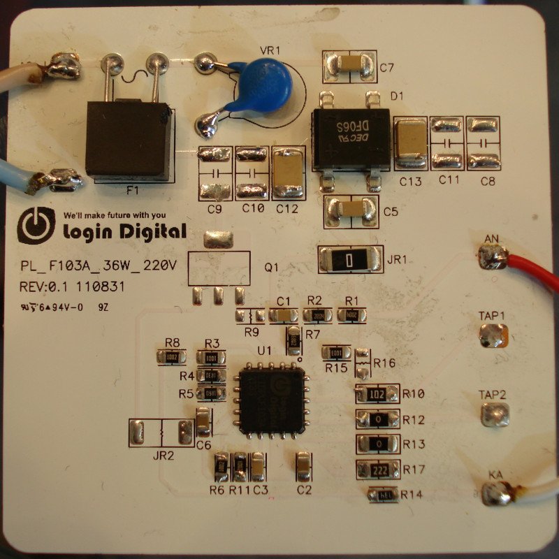 Вот драйвер 100-долларовой 10-ваттной 920лм E26 лампы Philips 2011 года (только на американское напряжение 110В). Там и APFC был и пульсаций мало и кондёры 130°С (Rubycon RX30).