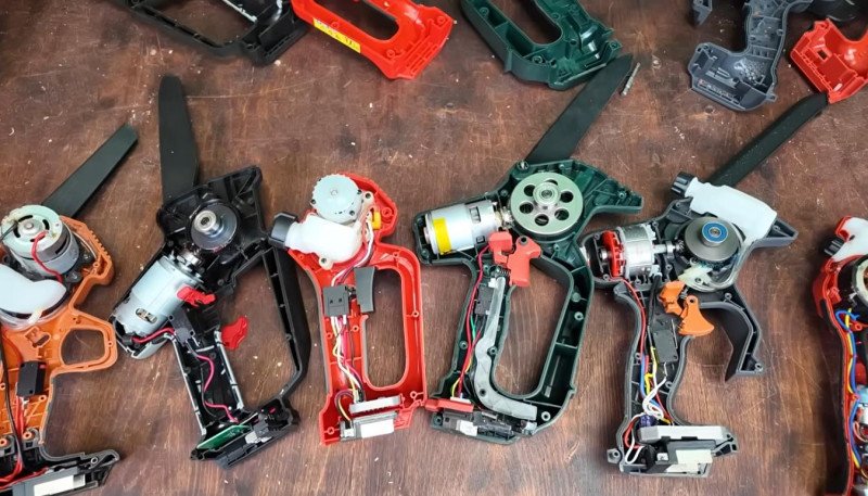 а по переделке — да, однозначно это страшнейший гемор который того не стОит. и гемор именно в размещении контроллера — он нифига туда не влазит. ну и плюс по стоимости оно не сильно дешевле новой пилки выходит. ну вот такая пилка за 50 наших рублей — это прям подарок, переделывать свою — это ж не один час долбаться, плюс мотор с контроллером не бесплатные… когда БК пилки только появились и стоили дороговато — да, может определенный смысл и был — а у меня еще и моторчик сгорел в итоге, а выкидывать жалко было. но сейчас вообще нет смысла переделывать