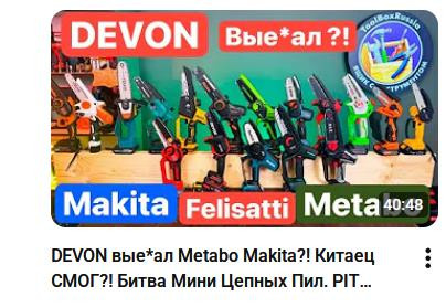 А пила в обзоре, на даче есть, вобщем пилит нормально, но подача масла не рабочая в принципе, давить на пипку упаришься, проще смазывать цепь из флакона переодически. Ну цепь в коплекте была сырая, буквально через два три пропила вытягивалась и гремела. Но пила в принципе рабочая оказалась, даже два акб достались достаточно емкие, два лета небольшого пиления прожили, не знаю чего этим летом с ними будет.