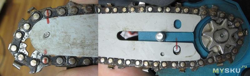 покупка правильной цепи без лишнего звена решает проблему плохой натяжки, за счет того что шина заходит в паз на корпусе на большую длину и потому не крутится туда сюда.