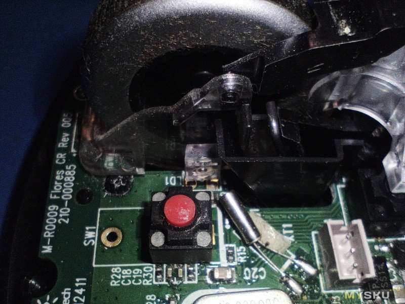 В разобранной мыши производится замена тактовых кнопок (процесс замены не документировался).