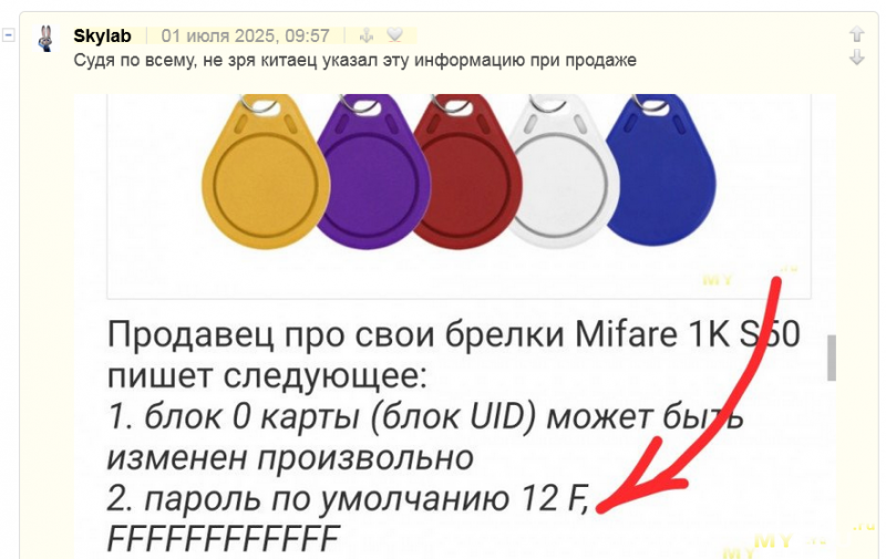 Продавец про свои брелки Mifare 1K S50 пишет следующее: