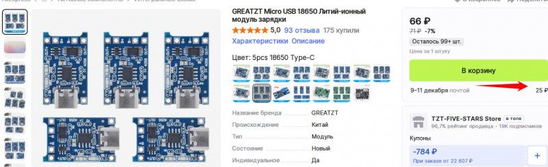 зарядка(4.2в\1.3А)+разрядка(2.9в)+повышалка до 5в