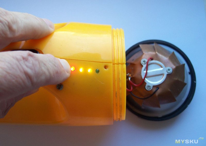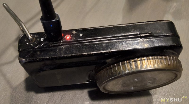 - Спокойно светил всеми светодиодами при подключенном проводе зарядки.