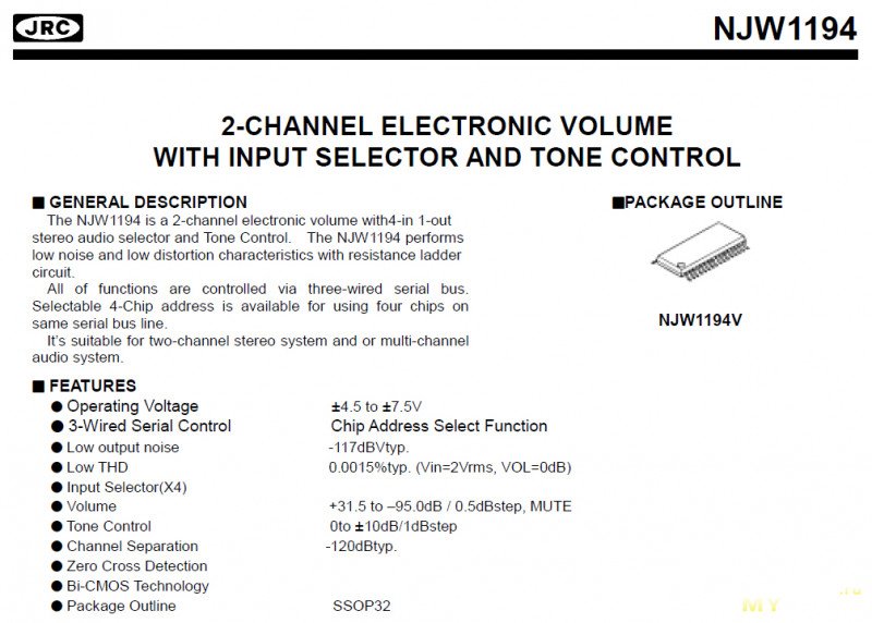 Но самое интересное — микросхема-регулятор уровня и тембров NJW1194.