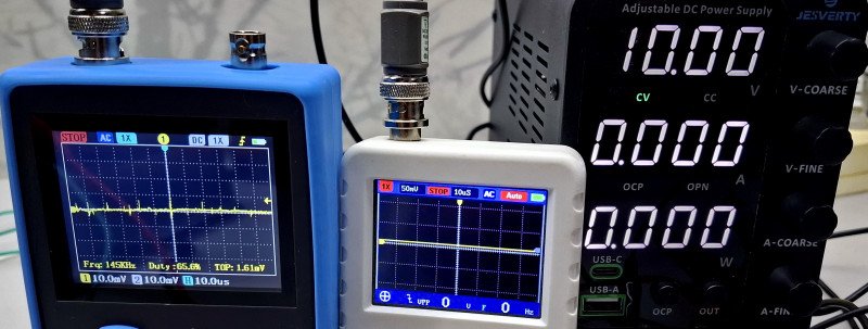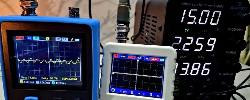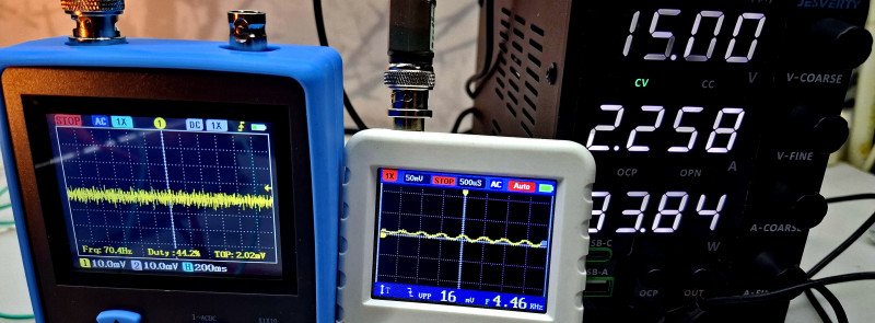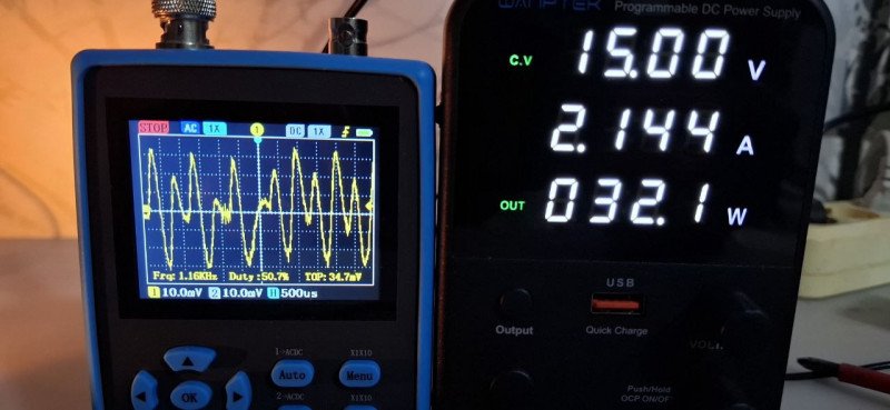 Жёлтая линия на осциллографе — Jesverty, зелёная, соответственно, — Wanptek.