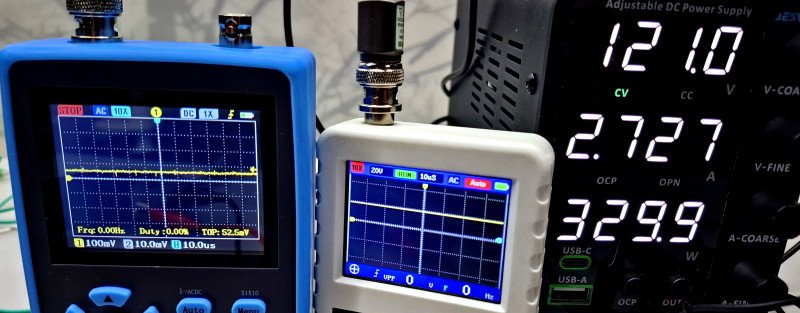 Из современных недорогих сам пользуюсь Hantek HDP-135V6A, приобрел случайно по акции на Озоне с хорошей скидкой. Работает исправно несколько лет, но с ним пришлось повозиться. В первую очередь заменил энкодеры, т.к. оригинальные при нажатии иногда давали и крутильные срабатывания. После замены энкодеров этот косяк прекратился. Еще что-то дорабатывал в плане убрать протечки из питающей сети во вторичные цепи. Убрал Y-конденсаторы, и еще что-то, т.к. дома нет заземления. А также отключил от греха подальше сигнальные выводы USB разъема от микросхемы — чтобы на выходе было только 5v, и никаких «быстрых зарядок».