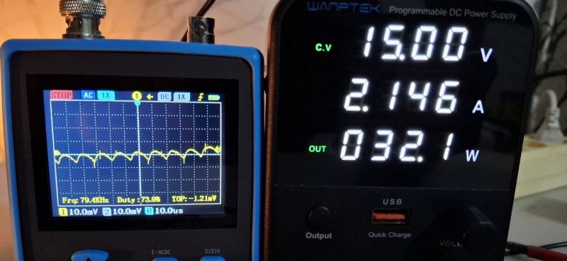Размах пульсаций на выходе Wanptek вырос до ~100мВ на частоте около 100кГц, Jesverty тоже слегка зашумел.