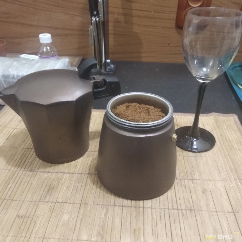 Когда засыпал кофе в рожок и даванул ей сверху.